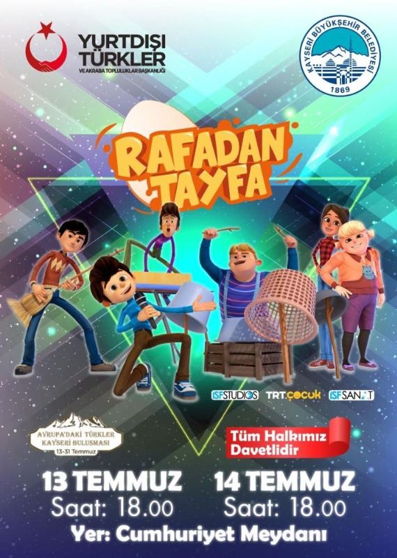 Programda, müzik ziyafetinin yaşanacağı konserlerin yanı sıra, yine Cumhuriyet Meydanı’nda 13 Temmuz Çarşamba ve 14 Temmuz Perşembe saat 18.00’de çocukların büyük sevgisini ve beğenisini kazanan Rafadan Tayfa Animasyon gösterisi de gerçekleştirilecek.