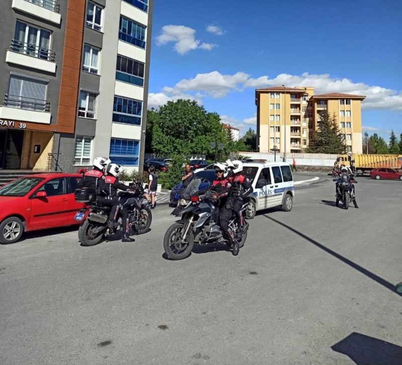 Asayiş Şube Müdürlüğü'ne bağlı Motosikletli Polis Timleri Amirliği ve Devriye Ekipler Amirliği'nce 'Kapan' uygulaması çerçevesinde 6 kip ve 14 personelin katılımıyla Hunat Bölgesi, Seyyid Burhanetin Bulvarı, Hoca Ahmet Yesevi Caddesi, Nuh Naci Yazgan Caddesi ve Sivas Bulvarı arasında genel asayiş uygulaması yapıldı. Şüpheli şahıslar ve araçlara yönelik yapılan kontrollerde 357 şahıs ile 63 aracın sorgusu yapıldı.