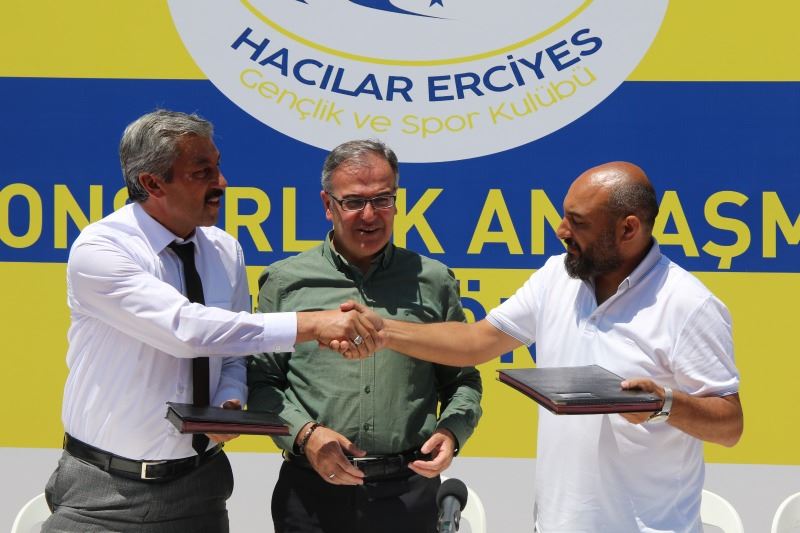 Hacılar Fevzi Mercan Stadyumu’nda gerçekleştirilen sponsorluk anlaşması imza törenine Hacılar Belediye Başkanı Av. Bilal Özdoğan, Gençlik Spor İl Müdürü Ali İhsan Kabakcı, ASKF Başkanı Mutlu Önal, Erciyes Üniversitesi Beden Eğitimi ve Spor Yüksek Okulu Dekan Yardımcısı Doç. Dr. Serkan Sucan, Hacılar Erciyesspor Futbol Şube Sorumlusu Halit Aysu, Futbol İl Temsilcisi Mehmet Yücel, Hacılar Erciyesspor Antrenörü Tanju Alan ve yöneticiler katıldı.