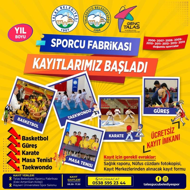 Talas Belediye Başkanı Mustafa Yalçın tarafından hayata geçirilen ‘Sporcu Fabrikası’nda 5 branşta düzenlenen kurslara kayıtlar başladı. Ayrıca Talasgücü Belediyespor bünyesindeki yaz futbol okullarına da kayıtlar alınıyor.