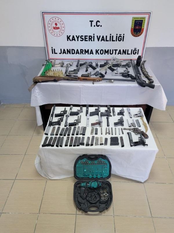 Kayseri İl Jandarma Komutanlığı ekiplerince ruhsatsız silah imal edildiği tespit edilen eve operasyon düzenlendi. Düzenlenen operasyonda çok sayıda silah ve mermi ele geçirildi.