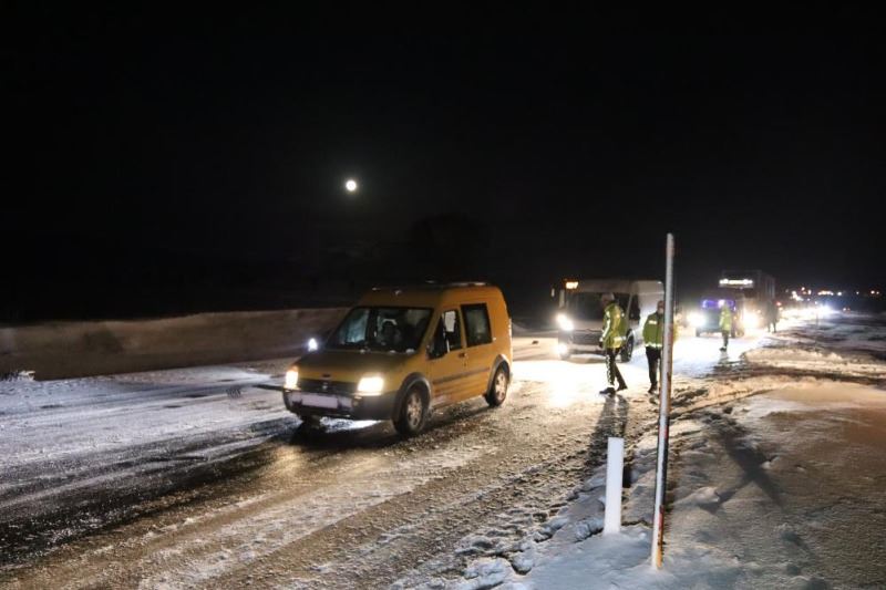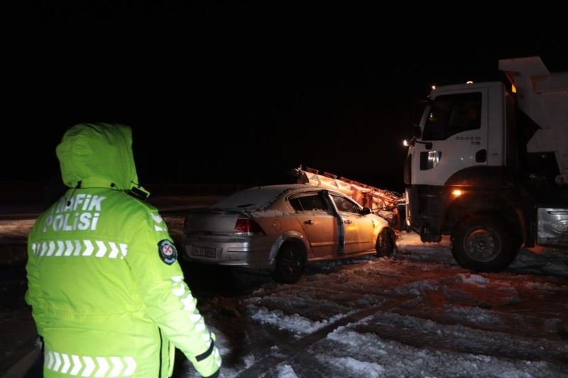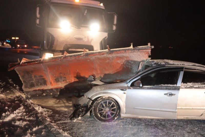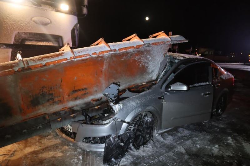 Araç buzlanmanın da etkisiyle yolda istikametinden tersine döndü. Bu sırada aynı yolda seyir halinde bulunan V.S. yönetimindeki 34 TY 6894 plakalı araç kar küreme aracının bıçağına çarptı. Otomobil çarpmanın etkisiyle bıçağa ok gibi saplanırken, sürücü ile eşi F.S. araç içerisinde sıkıştı.