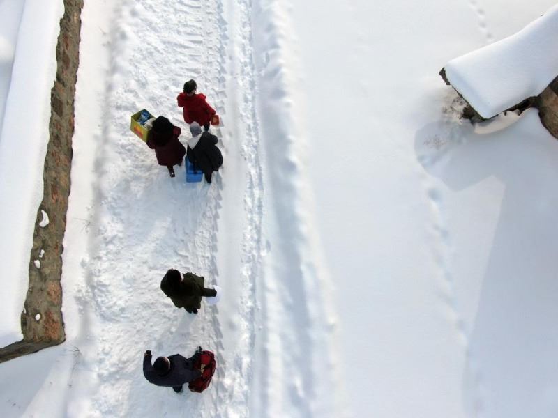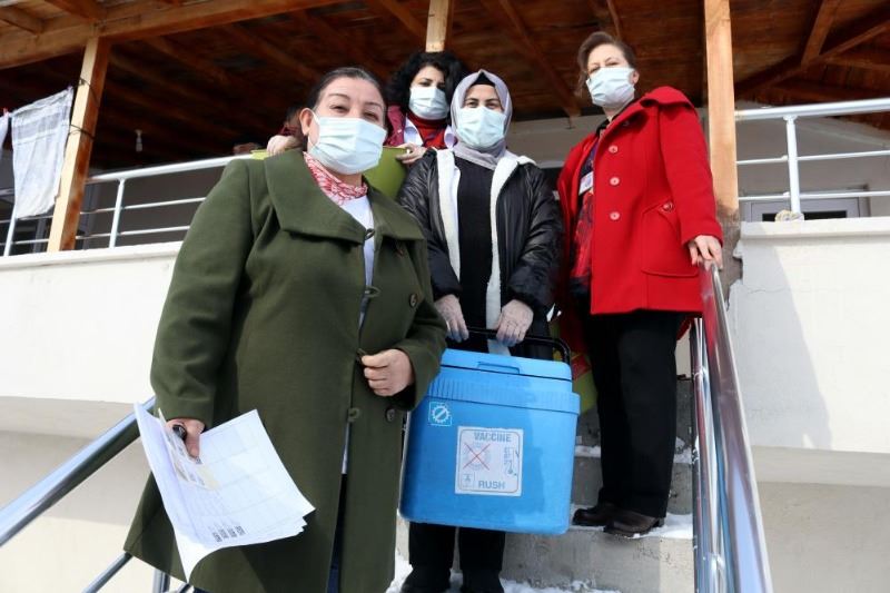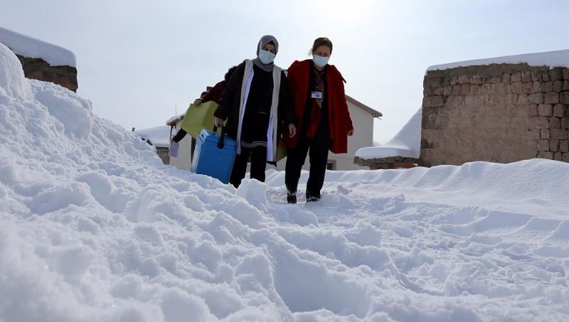 Kayseri'de sağlık çalışanları, zorlu kış şartlarına rağmen aşılama çalışmalarını sürdürüyor
