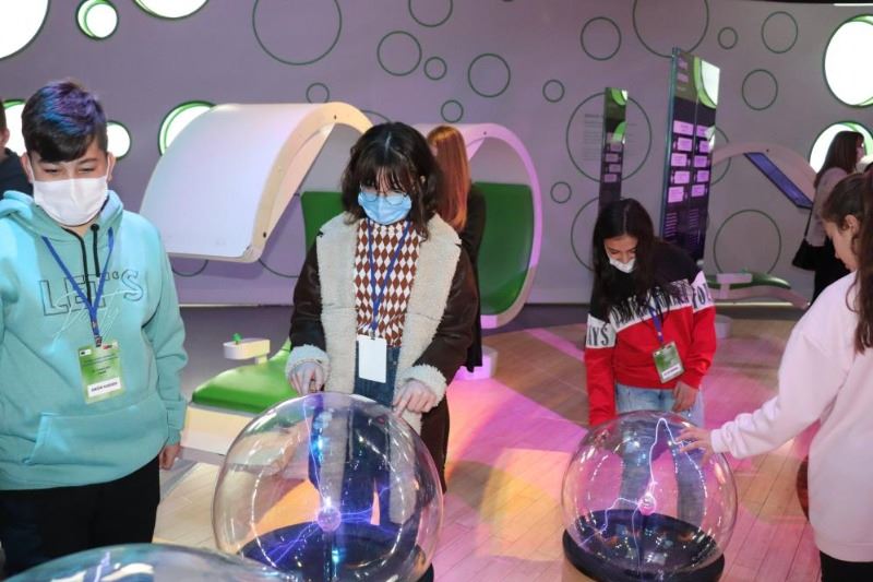 Sosyal alanlarından sergi alanlarına, atölyelerden kütüphaneye birçok donatıya sahip Kayseri Bilim Merkezi, misafir öğrencilerden tam not aldı.