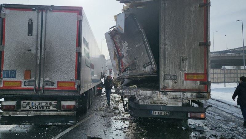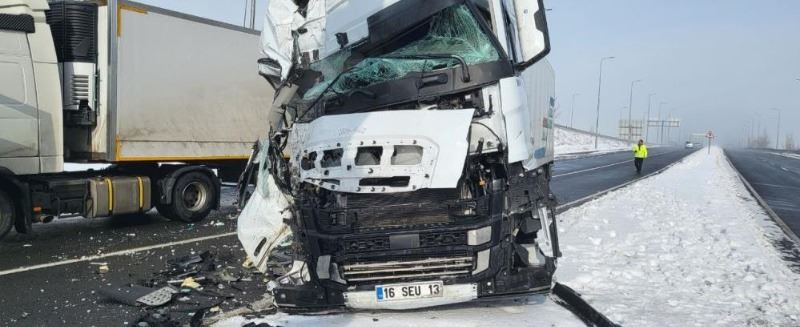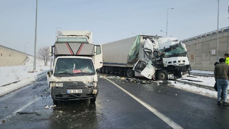 Edinilen bilgiye göre, ilçeye bağlı Cırgalan Mahallesi Kuzey Çevreyolu üzerinde meydana gelen kazada sürücüsünün direksiyon hakimiyetini kaybettiği 16 SEU 13 plakalı medikal malzeme taşıyan tır, trafik ışıklarında bekleyen 33 AJF 202 plakalı tıra arkadan çarptı. Çarpmanın etkisiyle savrulan 33 AJF 202 plakalı tır, önünde bekleyen 38 EB 506 plakalı kamyonete ve 38 LH 666 plakalı kamyona çarptı. Kazada 16 SEU 13 plakalı tırın sürücüsü yaralanırken, orta refüje savrulan tır da kağıt gibi ezildi. Haber verilmesi üzerine olay yerine sağlık ve polis ekipleri sevk edildi.