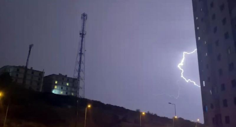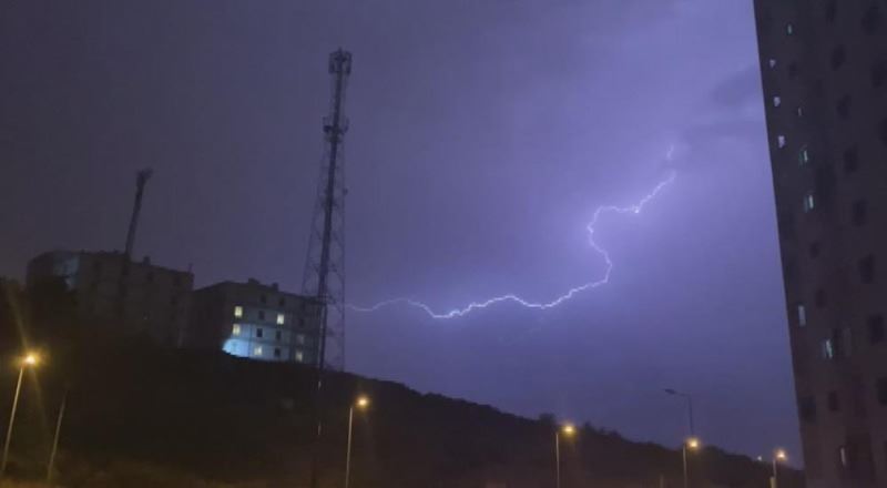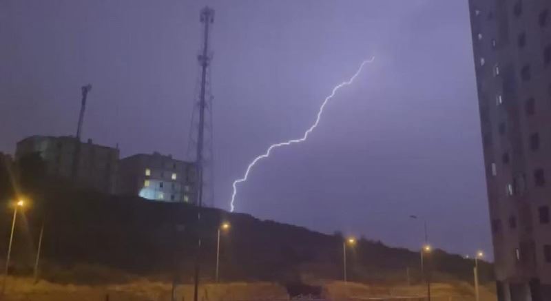 Kentte akşam saatlerinden itibaren etkili olan yağmur ile birlikte çakan şimşekler geceyi aydınlattı. Fotoğraf karelerine de yansıyan şimşekler, kent merkezinde geceyi aydınlattı.