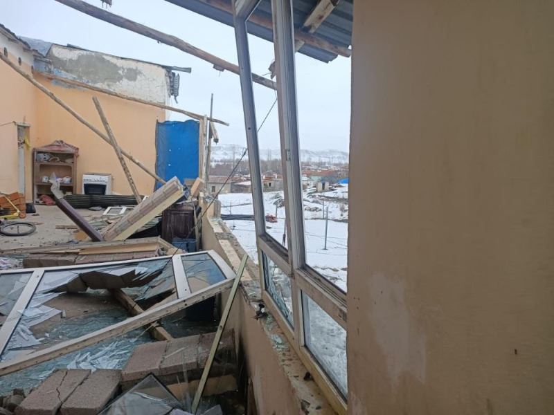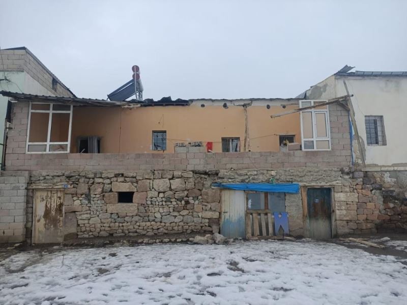 Kayseri’de etkisini gösteren şiddetli rüzgar evlerin çatılarını uçururken, bazı binaların da kaplamalarını söktü.