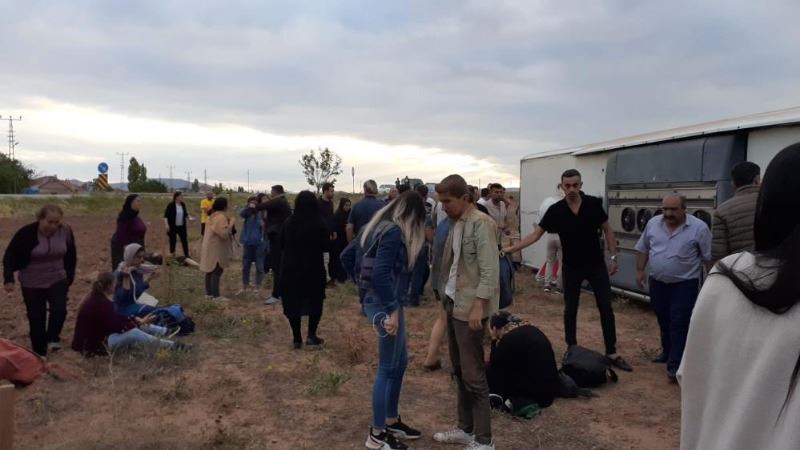 Edinilen bilgiye göre, Doğu Karadeniz turundan Mersin’e dönen yerli ve yabancı turistleri taşıyan A.T.'nin sürücüsü olduğu 33 EKC 39 plakalı otobüs, Kayseri-Sivas karayolu Sultanhanı mevkiinde yoldan çıkarak şarampole devrildi. Kazanın ardından bölgeye çok sayıda polis, jandarma ve sağlık ekibi sevk edildi. 46 kişinin bulunduğu öğrenilen otobüste, yaralanan 31 kişi ambulanslarla kentteki çeşitli hastanelere sevk edildi.