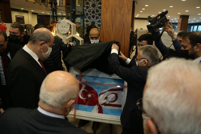 Kayseri Büyükşehir Belediye Başkanı Dr. Memduh Büyükkılıç, Kuzey Kıbrıs Türk Cumhuriyeti Cumhurbaşkanı Ersin Tatar’a, iki ülkenin birlik ve beraberliğine atıfta bulunarak el sanatı ile hazırlanan, Türk bayrağı ve KKTC bayrağından oluşan hediye takdim etti.