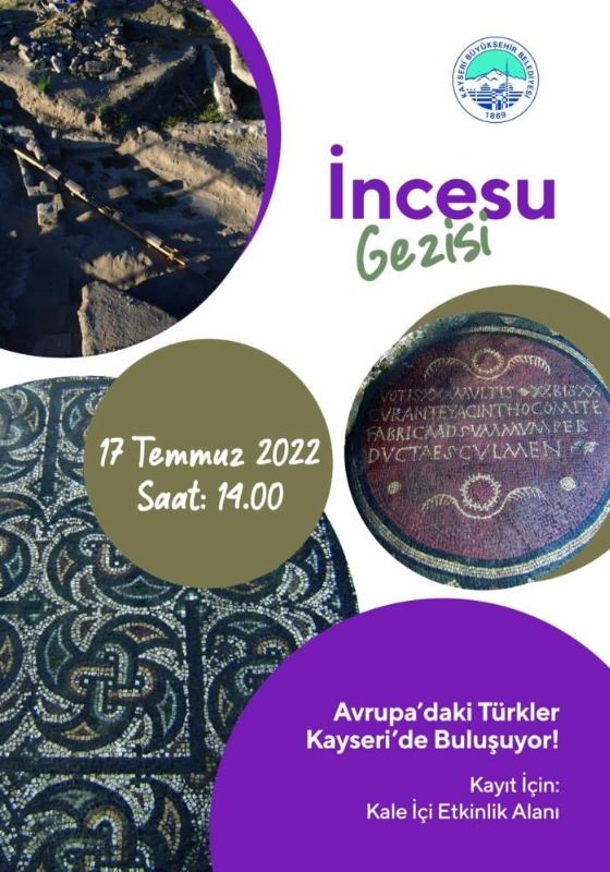 Avrupa’daki Türkler Kayseri Buluşması etkinliği çerçevesinde 14 Temmuz - 18 Temmuz tarihleri arasında Koramaz Vadisi, 16 Temmuz’da Kültepe Kaniş Karum, 17 Temmuz’da ise İncesu ilçesine kültür gezisi düzenlenecek. Tamamen ücretsiz olan geziler için kayıtlar Kale İçi Etkinlik alanında yapılıyor.