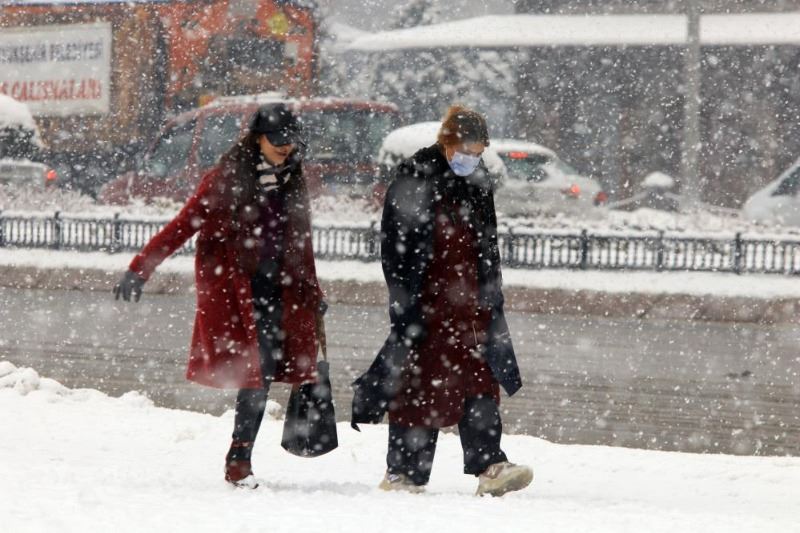 Kayseri'de sabah saatlerinde etkisini artıran yoğun kar yağışı kenti beyaza bürüdü.