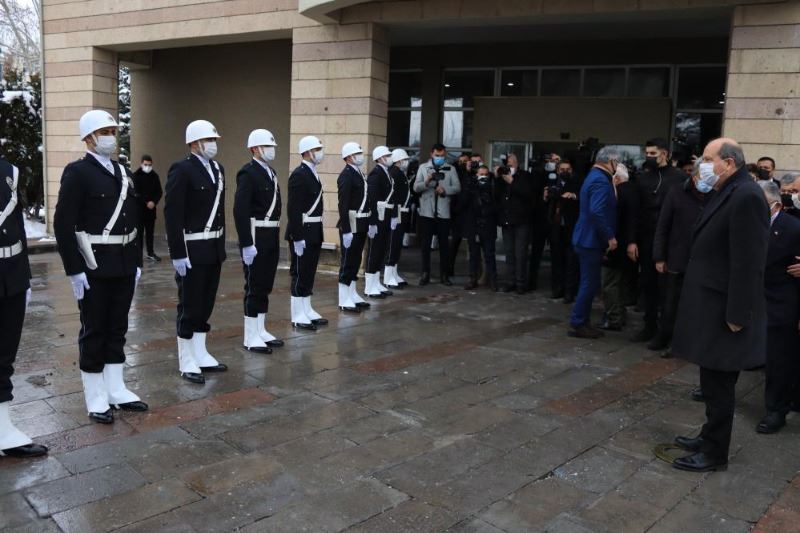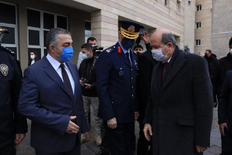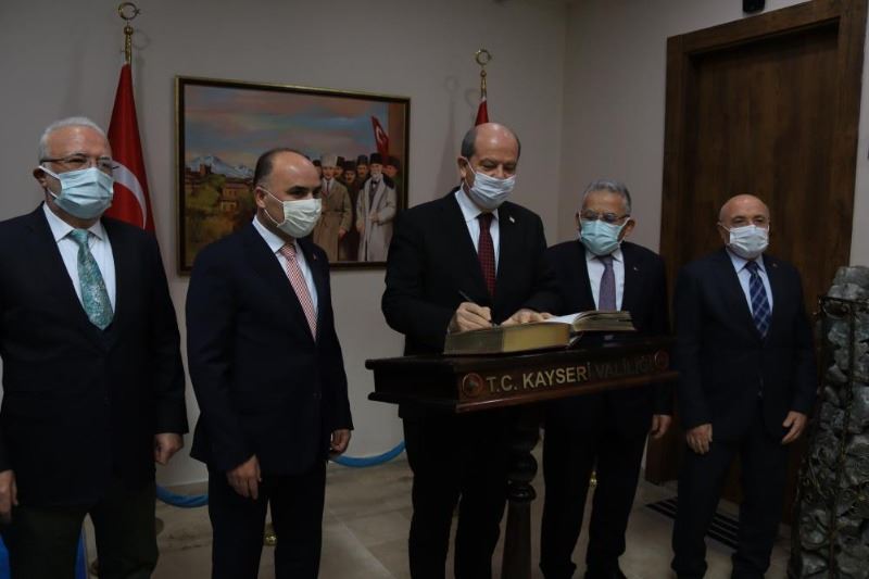 Kayseri Üniversitesi’nin Fahri Doktor Diploma Takdim törenine iştirak etmek ve bir dizi temaslarda bulunmak üzere ilimize gelen Kuzey Kıbrıs Türk Cumhuriyeti Cumhurbaşkanı Ersin Tatar Vali Şehmus Günaydın’ı makamında ziyaret edip oradan Kayseri Üniversitesi’ne geçti.