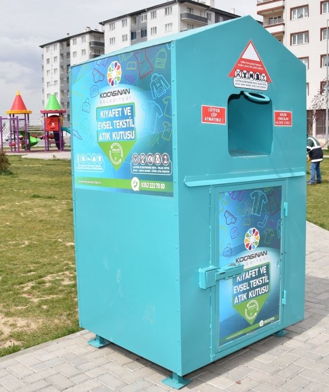Kocasinan Belediyesi’nin 2018 yılında ilçenin 182 farklı noktasına yerleştirdiği ‘Kıyafet ve Evsel Tekstil Atık Kutusu’ çalışması ile 2021 yılında topladığı 185 ton kıyafet atığını geri dönüşüme kazandırdı.