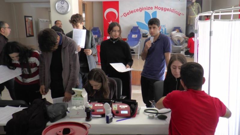 Kayseri’de bulunan bir lisede geleneksel olarak düzenlenen ‘Kan Ver Can Ver’ etkinliğinde, okul yönetimi ve öğrenciler kan bağışında bulundu.