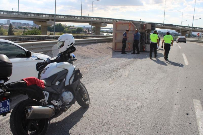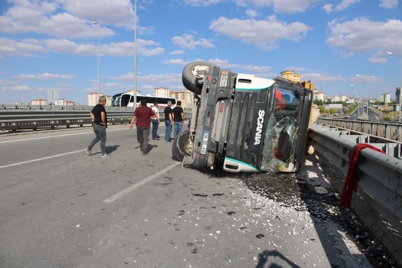 Kayseri'de mıcır yüklü kamyonun devrilmesi sonucu 1 kişi yaralandı.