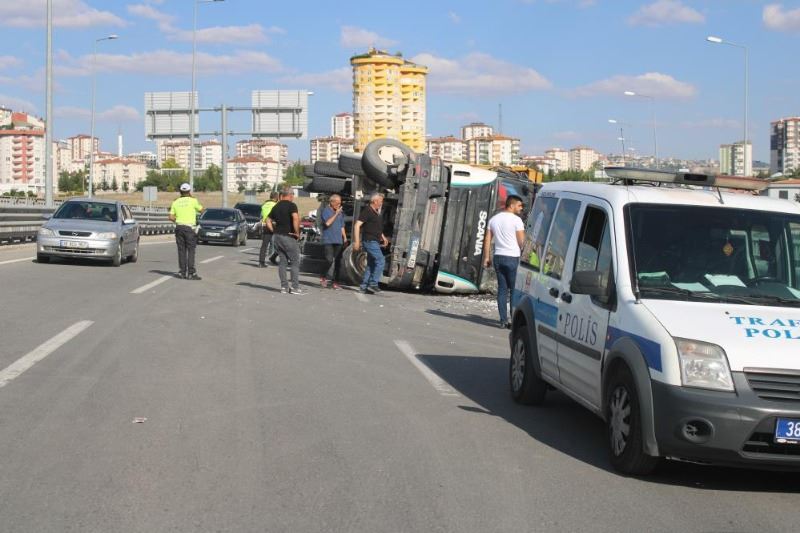 Edinilen bilgiye göre, Gökkent Mahallesi Nalçık Bulvarı Mimarsinan Köprüsü üzerinde meydana gelen kazada M.S.B.'nin sürücüsü olduğu 38 DS 430 plakalı mıcır yüklü kamyon, sürücüsünün direksiyon hakimiyetini kaybetmesi sonucu devrildi. Kazanın ardından olay yerine polis ve sağlık ekipleri sevk edildi. Polis ekipleri yol üzerinde güvenlik önlemi alırken, sağlık ekipleri ise kazada yaralanan sürücü M.S.B.'yi ambulansla hastaneye kaldırdı. Kaza ile ilgili soruşturma başlatıldı.