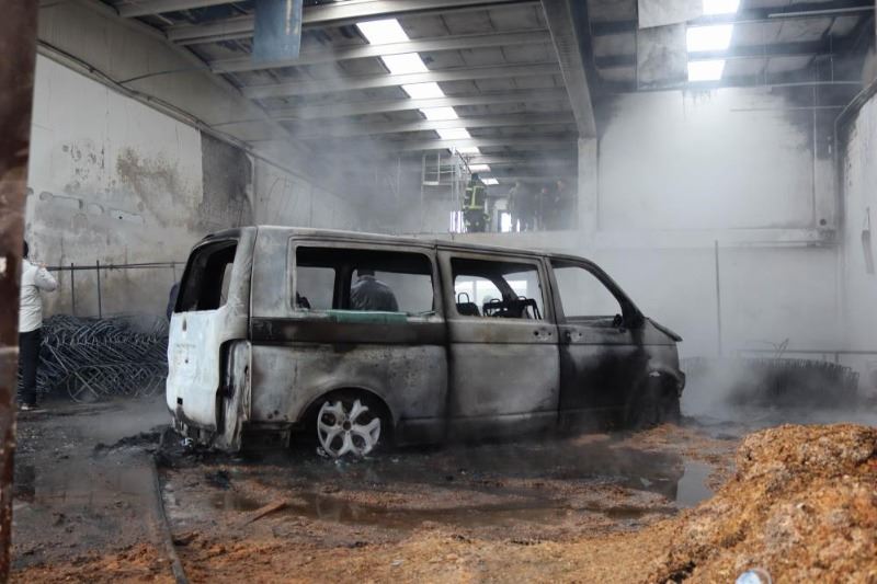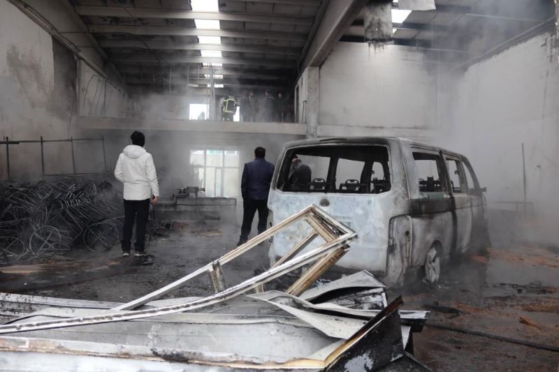 Çıkan yangında mobilya imalathanesi ile içerisindeki ticari araç küle döndü