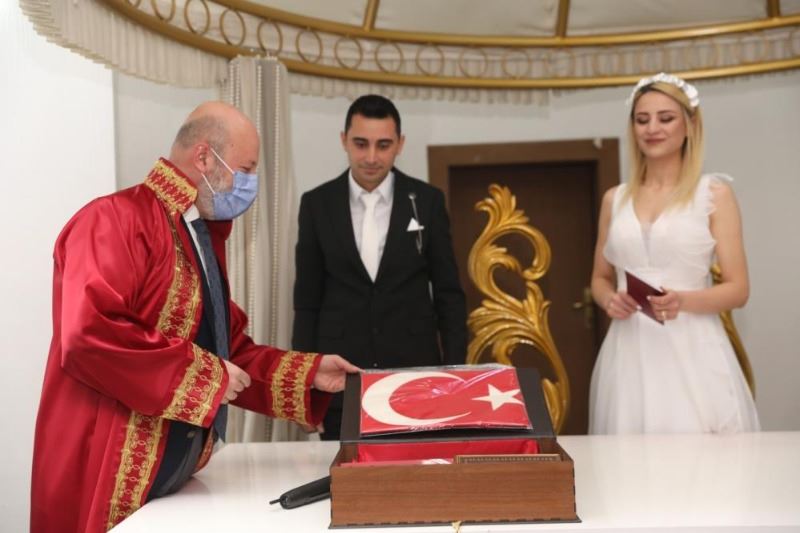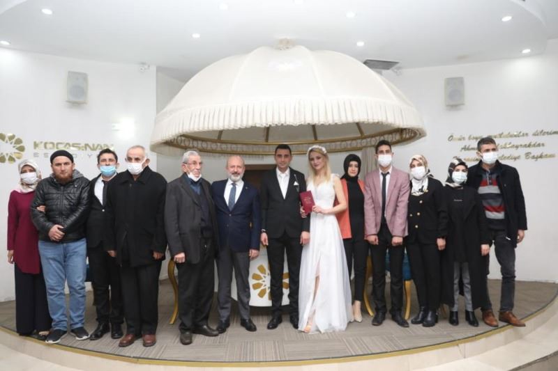 Çolakbayrakdar, törenin ardından evlilik cüzdanını çifte verirken, Türk Bayrağı, Kur’an-ı Kerim ve Aile İlmihali hediye ederek çifte ömür boyu mutluluklar diledi.