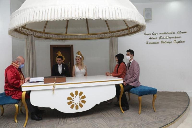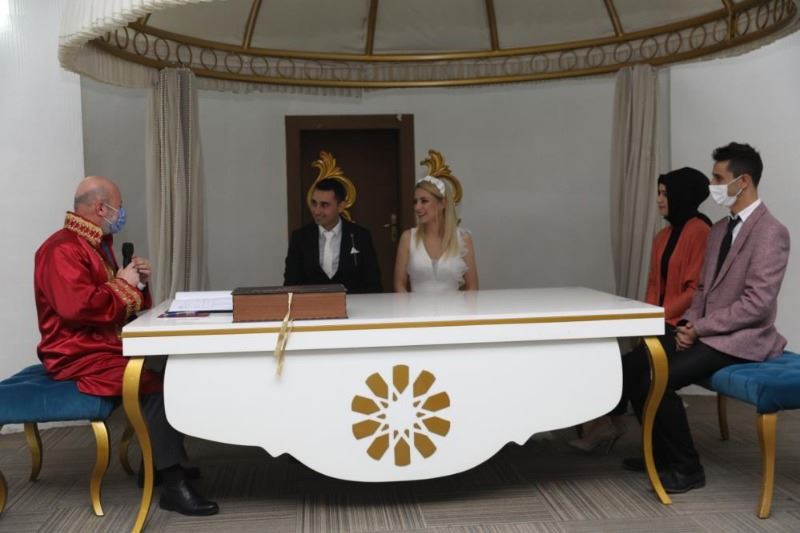 Kayseri’de 02.02.2022 tarihinde dünya evine girmek isteyen çiftler, nikah salonlarında yoğunluk oluşturdu.