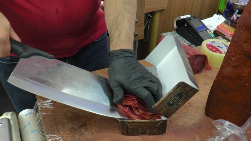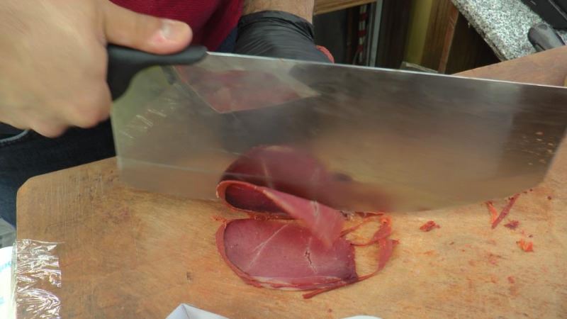 Müşterilerin genelde orta kalitede ürünleri tercih ettiğini söyleyen Yasin Güzel, “Şu anda sucuklarda fiyatlarımız 110 TL’den başlıyor 210 TL’ye kadar değişiklik gösterebiliyor. Pastırmada da 250 TL’den başlıyor 500 TL’ye kadar değişiklik gösterebiliyor. Tercih olayı da müşteri kesimi ile alakalı ama müşterilerimiz şu anda orta kalite ürünlerimizi tercih ediyorlar. Pastırma da orta kalitede 350-400 TL civarında. Sucuklarımızda da 150-170 TL bandında değişiyor orta kalite ürünler. Genelde müşterilerimiz bunları tercih ediyorlar” dedi.