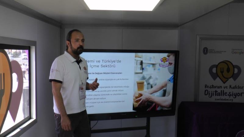 Cumhuriyet Meydanı’nda düzenlenen tanıtım etkinliğine KESOB Başkan Yardımcısı Altan Aydemir, Kayseri Esnaf ve Sanatkarlar Kredi ve Kefalet Kooperatifi Yönetim Kurulu Başkanı Mustafa Alan, yönetim kurulu üyeleri ve oda temsilcileri katıldı. Düzenlenen projedeki eğitimler çerçevesinde işletmelerin haritalara kayıt süreçleri, doğru yemek fotoğrafları için ipuçları, dijitalde promosyon ve kampanya, müşteri yorumlarını yanıtlama gibi başlıklarda eğitimler verilecek. Eğitimleri tamamlayarak sertifika alan işletmeci ve çalışanlara çekilişle 100 adet tablet hediye edilecek.