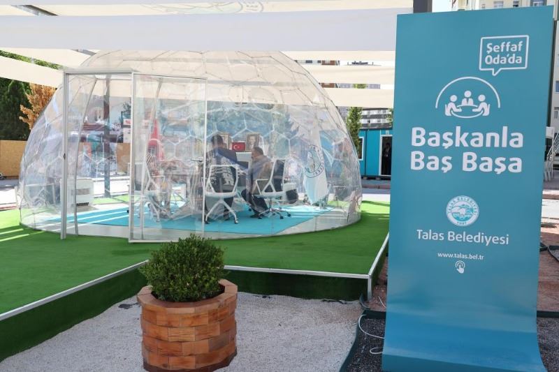 Talas Belediye Başkanı Mustafa Yalçın tarafından hayata geçirilen ve Türkiye’de ilk olma niteliği taşıyan ‘Şeffaf Oda’da Başkanla Baş Başa’ uygulaması tüm hızıyla devam ediyor. Makam odasının halka götürüldüğü uygulama ile vatandaşla direkt görüşme sağlanıyor.