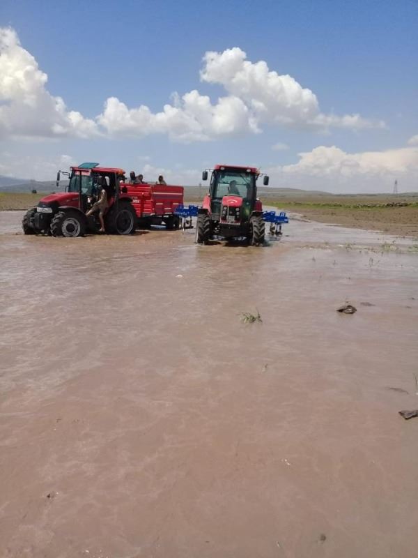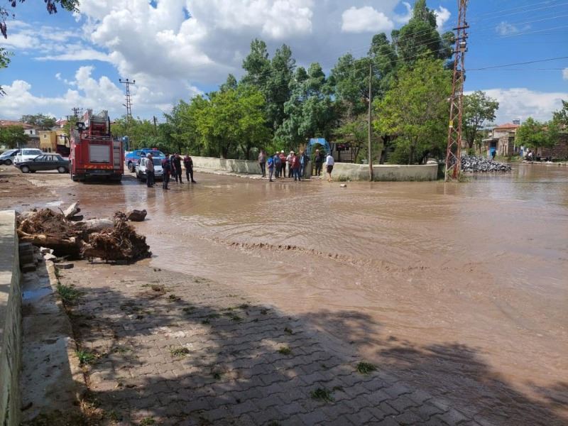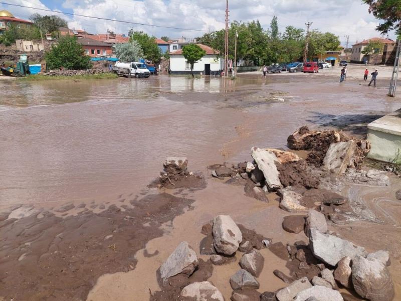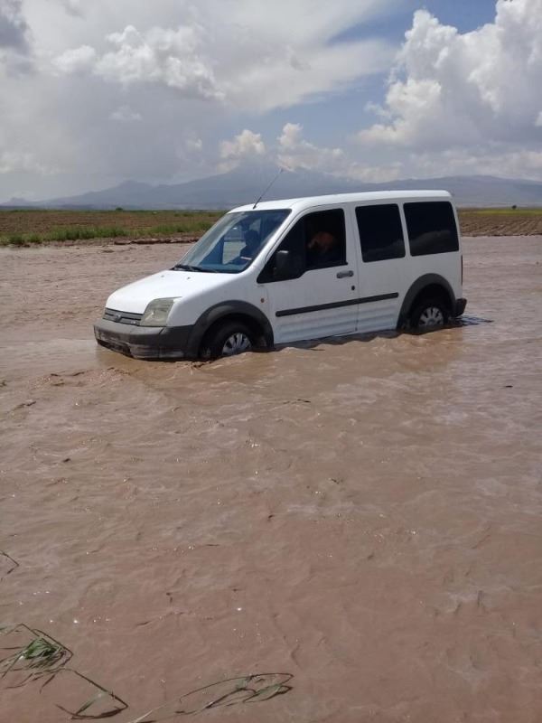 Kayseri'nin Tomarza ilçesinde etkili olan sağanak, sele neden oldu. Sel sularında araçları çamura batan 5 mevsimlik işçi ekipler tarafından kurtarıldı.