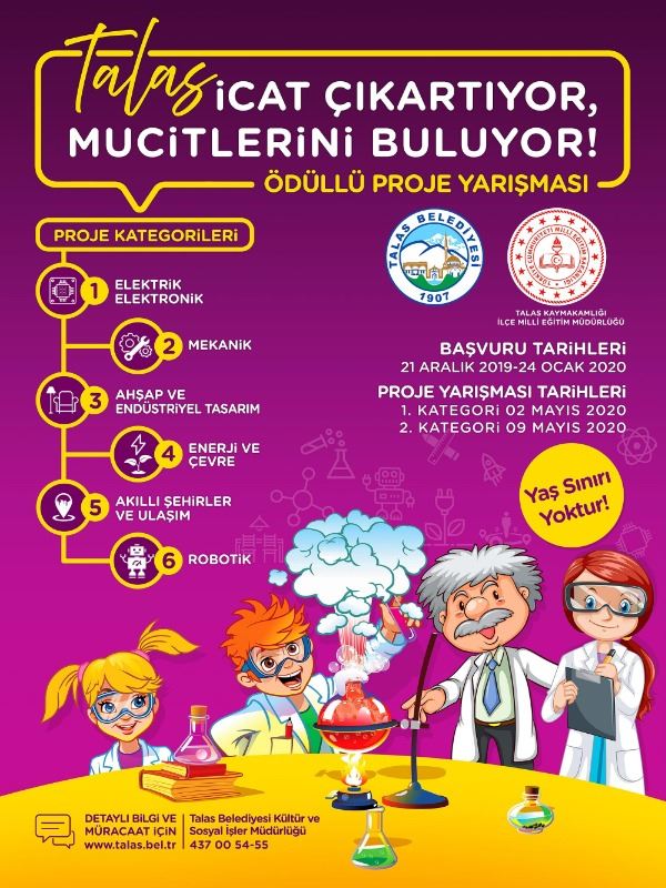 Talas Belediyesi tarafından ‘Talas İcat Çıkartıyor, Mucitlerini Buluyor’ sloganıyla düzenlenen ve yeni fikirlere ulaşmanın amaçlandığı yarışmaya başvurular devam ediyor.