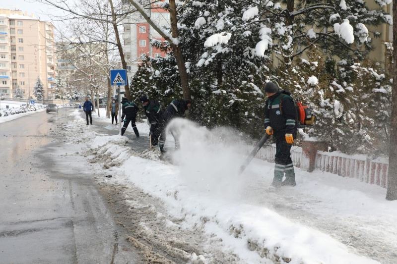 Talas Belediyesi ekipleri ilçe genelinde etkili olan kar yağışıyla birlikte yaya ve araç trafiğine yönelik çalışmalarına hız verdi.