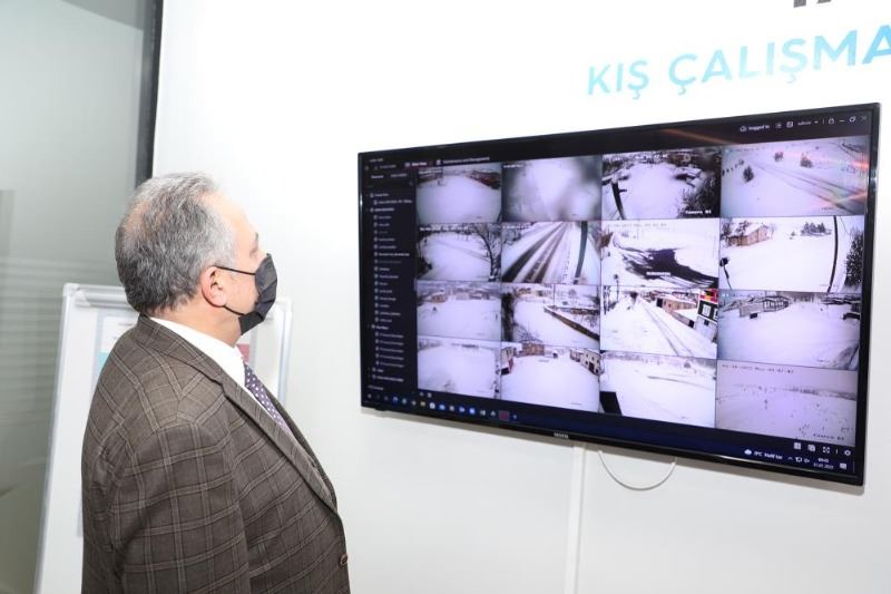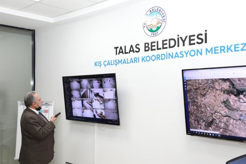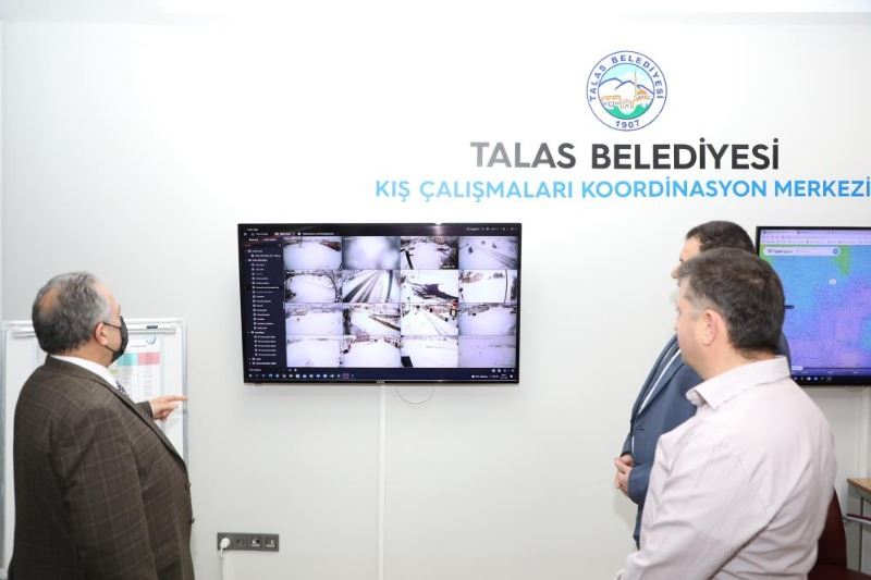 Talas Belediye Başkanı Mustafa Yalçın, devam eden kış çalışmalarını Kış Çalışmaları Koordinasyon Merkezi’ndeki canlı kameralar üzerinden inceledi.