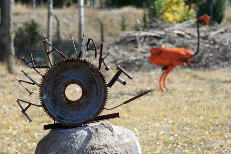 Çıktığı dünya turu sırasında mola verdiği Kayseri'nin Bünyan ilçesinde yeni bir hayata başlayan 33 yaşındaki Murat Tarakcı, çalıştığı yerde atıl durumdaki hurdaları heykele dönüştürüyor.