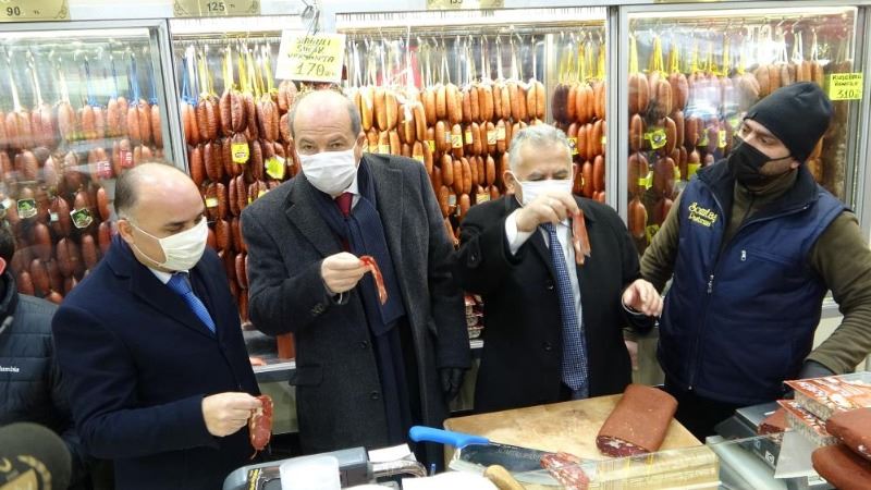 Bir dizi temaslarda bulunmak üzere Kayseri'ye gelen KKTC Cumhurbaşkanı Ersin Tatar, Cumhuriyet Mahallesi'nde bulunan Kazancılar Çarşısı'nda esnaf ziyaretinde bulundu. Burada bir pastırmacıya giren Tatar, meşhur Kayseri pastırmasını doğrayarak tadına baktı. Daha sonra tarihi Kayseri Kalesi'nde incelemelerde bulunan Ersin Tatar, yetkililerden bilgi aldı.