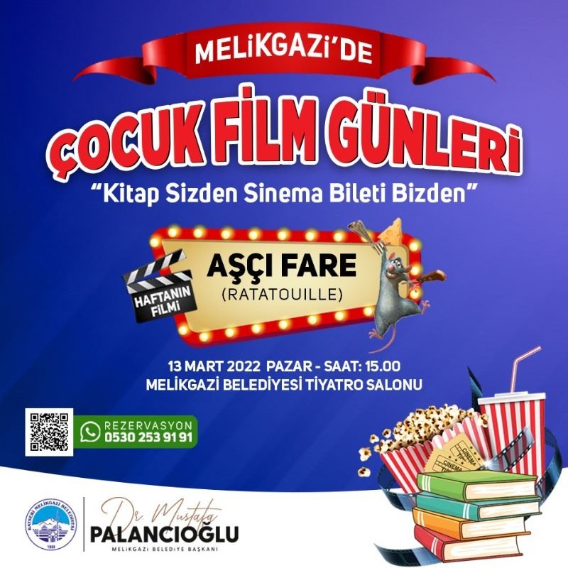Çocukların gönüllerince eğlenmeleri ve sosyalleşmeleri için 'Çocuk Filmi Günleri' düzenlediklerini söyleyen Başkan Dr. Palancıoğlu; “Çocuklarımızın, sosyal, kültürel, sportif ve birçok alanda gelişim göstermesi, kendisini geliştirmesi ve daha sosyal bir kişiliğe kavuşması amacıyla inşallah daha çok buna benzer projemiz var. Gelecek öğrencilerimizin ellerinde şekillenecek. Bu nedenle eğitime ve gençlere yapılan yatırımlar, farklı ve eğlenceli etkinlikleri önemsiyoruz. Çocuklarımız bizler için her zaman önemli bir yerde bulunuyor. ‘Kitap Sizden Sinema Bileti Bizden’ kampanyamız ile kitaplarınızı bağışlayarak sinema biletinizi alabilirsiniz. Çocuk Filmi Günleri’miz ile eğlence dolu bir gün sizleri bekliyor. Aşçı Fare (Ratatouille) 13 Mart Pazar günü saat 15:00’te Melikgazi Belediyesi Tiyatro Salonu'nda düzenlenecek. Çocuklarımıza pamuk şeker ve patlamış mısırda ikram edeceğiz. 27 Mart Pazar günüde Kayıp Balık Nemo filmini çocuklarımızla buluşturacağız. Film izlemek isteyen tüm çocuklarımızı bekleriz” dedi.