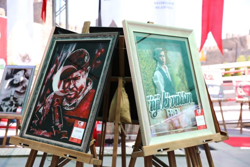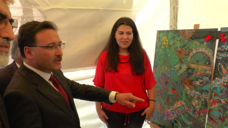 Vali Çiçek önderliğinde hareket eden protokol üyeleri şehitliğin ardından Erciyes Üniversitesi Güzel Sanatlar Fakültesi öğrencileri tarafından hazırlanan eserlerin sergilendiği ‘Milli İrade Uğruna Türkiye Aşkına’ isimli serginin açılışına katıldı.