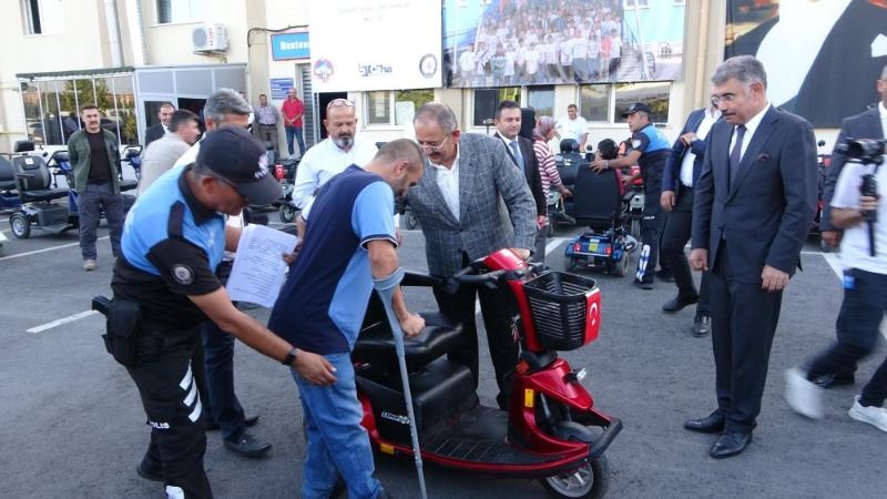 Konuşmaların ardından engelli vatandaşlara akülü araçları teslim edildi.