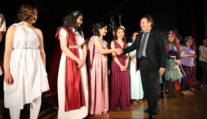 Ana teması aşk ve evlilik olan oyunda rol alan Müzik ve Sahne Sanatları Kulübü öğrencileri, başarılı performanslarından dolayı ayakta alkışlandı.