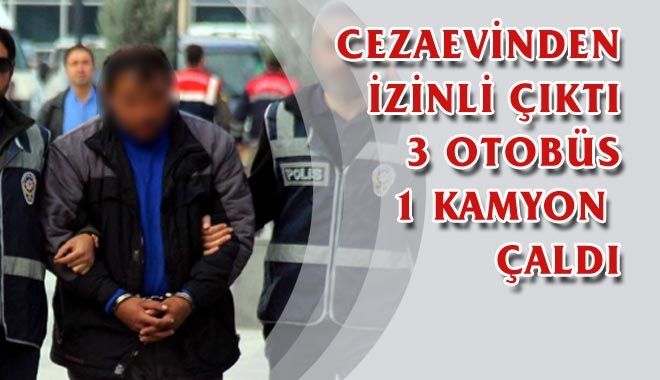 Kayseri´de 2017 yılı içerisinde 14 ayrı oto hırsızlığı yapan ve yakalanarak tutuklanan şahıs, cezaevinden izinli çıkmasıyla beraber 3 otobüs ve 1 kamyon daha çaldı.