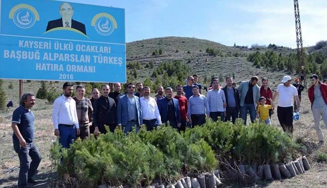 Başbuğ Alparslan Türkeş Hatıra Ormanı´nda düzenlenen fidan ekimine Ülkü Ocakları Kayseri İl Başkanı Volkan Çolak, MHP MYK Üyesi Serap Şule Kalın, MHP Kocasinan İlçe Başkanı Hacıali Doğan, geçmiş dönem Ülkü Ocakları Genel Başkan Yardımcısı Selim Gümüş ve çok sayıda ülküdaşımız katıldı. Düzenlenen törende konuşan Ülkü Ocakları Kayseri İl Başkanı Volkan Çolak, ?Başbuğumuz Alparslan Türkeş´in vefatının 21. yılı münasebetiyle 1071 fidanımızı bugün burada toprakla buluşturduk. Onun aziz hatırası için 2016 yılında oluşturulan hatıra ormanına bizlerde burada ölüm yıldönümü sebebi ile böyle bir etkinlik gerçekleştirdik. Ülkücü hareketin, vatan için donanımlı bireyler yetiştirmenin yanında vatan topraklarına karşı olan sorumluluğunu da bu tür etkinliklerle göstermiş olduk. Başbuğumuzun fidanları yetişecek Türkiye büyüyecek Turan düşümüz gerçekleşecek? diye konuştu.