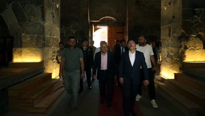 Kayseri Valisi Gökmen Çiçek, Kayseri Büyükşehir Belediye Başkanı Memduh Büyükkılıç ile birlikte Bünyan’da 1240 yılında Selçuklu Veziri Celalettin Karatay tarafından yaptırılan Karatay Hanı Kervansarayı’nda incelemelerde bulundu.