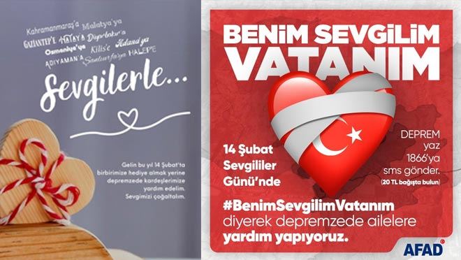 'Gelin bu yıl 14 Şubat’ta birbirimize hediye almak yerine depremzede kardeşlerimize yardım edelim. Sevgimizi çoğaltalım' temasıyla 9 Şubat Perşembe günü Taşucu’nda başlatılan kampanyanın görselini on binlerce kişi paylaştı. Bu organizasyondan esinlenen, merkezi Bursa’da olan ve bünyesinde 90 dernek, 15 federasyon ve iki konfederasyon barındıran Türk Dünyası Yörük Türkmen Birliği de benzeri bir afiş hazırlatarak kampanyaya destek verdi. 'Sevgimizi çoğaltalım' başlıklı çalışma hakkında bilgi veren Gazeteci Yazar Rıfat Yörük; "İlk paylaştığımızda birçok kişi bunu yardım kampanyası gibi algılayarak IBAN sordu. Böyle bir amacımız ve hedefimiz olmadığını, sadece afişin paylaşılarak bir bilinç oluşturulmasını arzu ettiğimizi söyleyince çok şaşırdılar. Bu görselimiz anonim bir şekilde sosyal medyada hızla yayılırken, Türk Dünyası Yörük Türkmen Birliği’nin de destek vermesi bizi çok sevindirdi. Son olarak AFAD’ın da 14 Şubat için ‘Benim Sevgilim Vatanım’ temalı benzer bir çalışma başlatması kampanyamızın amacına ulaştığını gösterdi. Bu vesileyle ilk günden itibaren görselimizi çeşitli sosyal platformlarda paylaşarak bize destek veren tanıdık/tanımadık herkese teşekkürlerimizi iletiyoruz” dedi.
