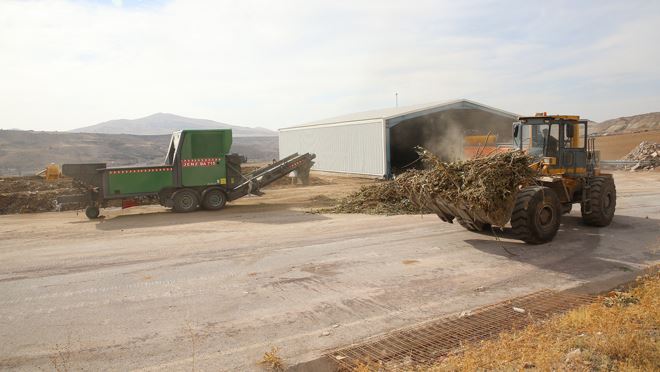 “Öğütme makinesinden geçirilerek yığın halinde sahaya serilen bitkisel atıkların nem ve ısı kontrolünü sağlamak amacıyla havalandırma makinası kullanılmaktadır. Dört haftanın sonunda kompost haline dönüşen park bahçe atıkları olgunlaşma alanına alınmaktadır. Altı haftalık olgunlaşma süresini tamamlayan kompost eleme makinasından geçirilerek kullanıma sunulmaktadır.”
