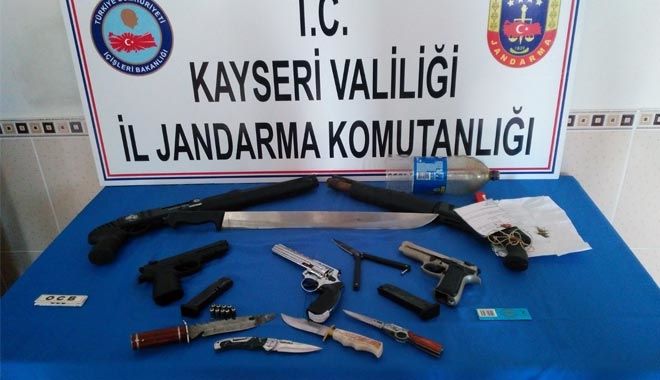 Develi Cumhuriyet Başsavcılığının talimatı ile 19´u Develi´de, 1´i Yeşilhisar´da, 3´ü Kayseri il merkezinde ve 1´i Niğde il merkezinde olmak üzere toplam 24 ayrı adreste eş zamanlı olarak 17 şüpheli şahsa yönelik icra edilen arama faaliyeti sonucunda; Şüpheliler C.A., M.A., S.K., K.K., O.K.T., H.O., E.Ö., H.E. ve C.Ö.´ye ait 860 gram kubar esrar, 20 gram toz esrar, 5 gram metemfetamin, 1 adet ruhsatsız tabanca, 7 adet 7,65 milimetre fişek, 2 adet ruhsatsız av tüfeği, 2 adet kuru sıkı tabanca, 9 adet kuru sıkı fişek, 4 adet bıçak, 5 adet uyuşturucu içmek için kullanılan aparat ele geçirildi.