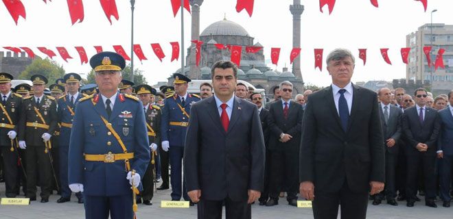 Cumhuriyet Meydanı’nda düzenlenen törene Vali Orhan Düzgün, Garnizon Komutanı Ali Demiral, Büyükşehir Belediyesi Başkan Vekili Serdar Altuntuğ, siyasi parti il başkanları, askeri erkan ve vatandaşlar katıldı.