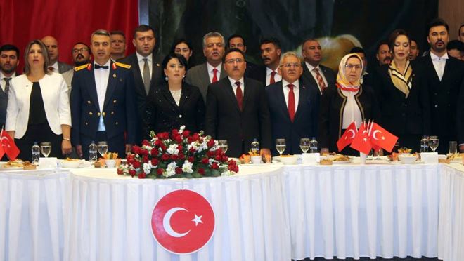 Kentte bulunan bir otelde düzenlenen Cumhuriyet Resepsiyonunda Vali Gökmen Çiçek, Büyükşehir Belediye Başkanı Memduh Büyükkılıç ve protokol üyeleri, davetlileri kabul etti. Saygı duruşunda bulunulması ve İstiklal Marşı'nın okunmasının ardından resepsiyonda konuşma yapan Vali Çiçek; "Bugün cumhuriyetimizin 99. yılını büyük bir coşkuyla kutluyoruz. Milletlerin de insanlar gibi karakterleri vardır. Bizim milletimizin en belirgin karakteristik özelliği bağımsızlığına olan düşkünlüğüdür. Bizim milletimiz tarh boyunca gözlenmiştir ki tutsak edilemez, esir edilemez. Nitekim esir edilemedi de. Bundan 99 yıl önce esaretin zincirlerini kırdı ve bağımsızlığını kazandı. Büyük çabaların neticesinde kurulan cumhuriyet, bugün 99. yıldönümü içerisinde. Biz de bunun haklı gururunu yaşıyoruz. Zor bir dönemde, ülkenin dört bir yanı işgal altındayken sorumluluk sahibi, milletine aşık, cesur bir lidere ihtiyaç vardı. İşte böyle bir zamanda Gazi Mustafa Kemal Atatürk ortaya çıkarak silah arkadaşlarıyla beraber bu millete vurulmak istenen prangaları kırdı ve attı, ardından cumhuriyeti ilan etti. Cumhuriyet, Kayseri için çok büyük önem taşımaktadır. Kurtuluş Savaşı'nda Kayserili gençlerimiz akın akın cephelere koştular. Hatta Kayseri Lisesi, savaşa giden gençlerimiz yüzünden o dönem mezun veremedi. Kayseri bu anlamda cumhuriyetimiz için önemli bir şehirdir. Güzel şehirden haykırmak istiyorum, Kayseri ve Kayseri gibi şehirler olduğu sürece bu memleket asla tutsak edilemeyecektir" ifadelerini kullandı.