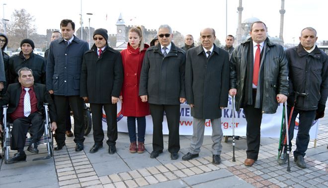 3 Aralık ?Dünya Engelliler Günü´ çeşitli etkinliklerle kutlandı. Etkinlikler kapsamında Anadolu Sakatlar Derneği ve kısa adı ZERİD olan Zihinsel Engelliler Derneği Kayseri Şubesi üyesi engelli vatandaşlar ve aileleri tarafından Cumhuriyet Meydanındaki Atatürk anıtına çelenk konularak saygı duruşunda bulunularak kutlamaların startı verildi..