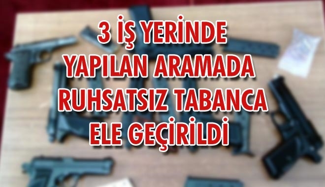 Kayseri Emniyet Müdürlüğü´ne bağlı Kaçakçılık ve Organize Suçlarla Mücadele Şube Müdürlüğü ekipleri tarafından 3 iş yerinde yapılan aramalarda ruhsatsız tabanca, kuru sıkı tabanca ve çok sayıda fişek ele geçirildi.