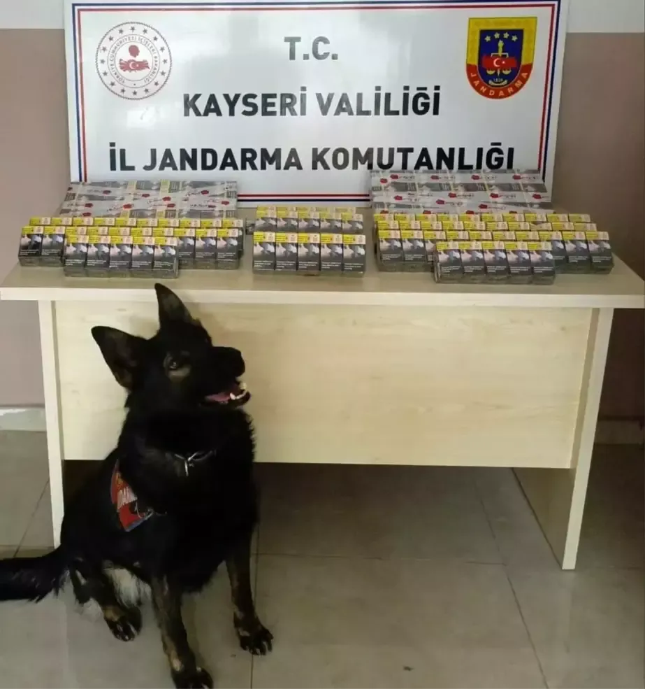 Çay ve tütün tespit köpeği ile kamyonda yapılan aramada 300 paket bandrolsüz sigara ele geçirildi.