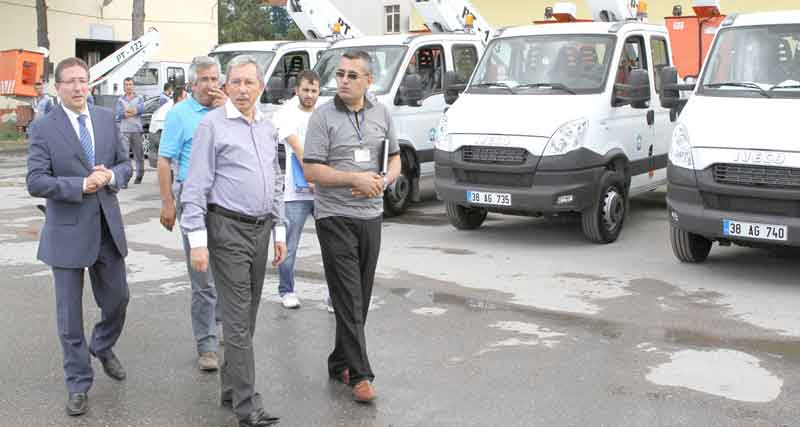 Kayseri ve Civarı Elektrik TAŞ `de hizmete giren 32 adet platformlu araçların devir teslim töreni Makine İkmal Müdürlüğü araç bakım atölyesi ve parkında gerçekleştirildi. Devir teslim törenine Kcetaş Genel Müdürü Şadi Büyükkeçeci`nin yanı sıra Kcetaş Genel Müdür Yardımcısı Salih Hisarcıklıo, ihaleyi kazanan Işın Mühendislik`ten Yusuf Sönmez, Makine İkmal Şefi Ali Demirbaş, Iveco-Gülsoylar satış danışmanı İsmail Kuşkonmaz ve makine ikmal müdürlüğünde çalışan personel katıldı. Devir teslim töreninde Türkiye`de ilk defa Kayseri ve Civarı Elektrik TAŞ tarafından bu tarz hidrolik platformlu araçların kullanılmaya başlandığını söyleyen Büyükkeçeci, “İşçi sağlığı ve güvenliği açısından yüksek donanıma sahip bu araçlar Türkiye`de ilk defa KCETAŞ tarafından kullanılmaya başlandı. Emniyet yönünden diğer araçlardan daha üst seviyede. Hidrolik platformlu araçların ön tampon ile arka sepet uç noktası arası mesafeleri en kısa projelendirilmiş, dar sokaklarda dönme ve manevra kabiliyetleri sağlanmıştır. Ayrıca, araçlarımız Araç Takip ve Filo Yönetim Sistemi ile 7 gün 24 saat izlenmekte, verimli bir çalışma sağlanmaktadır. Alınan bu araçlar şehrimize ve şirketimize hayırlı olsun. Kazasız belasız günler diliyorum” dedi.