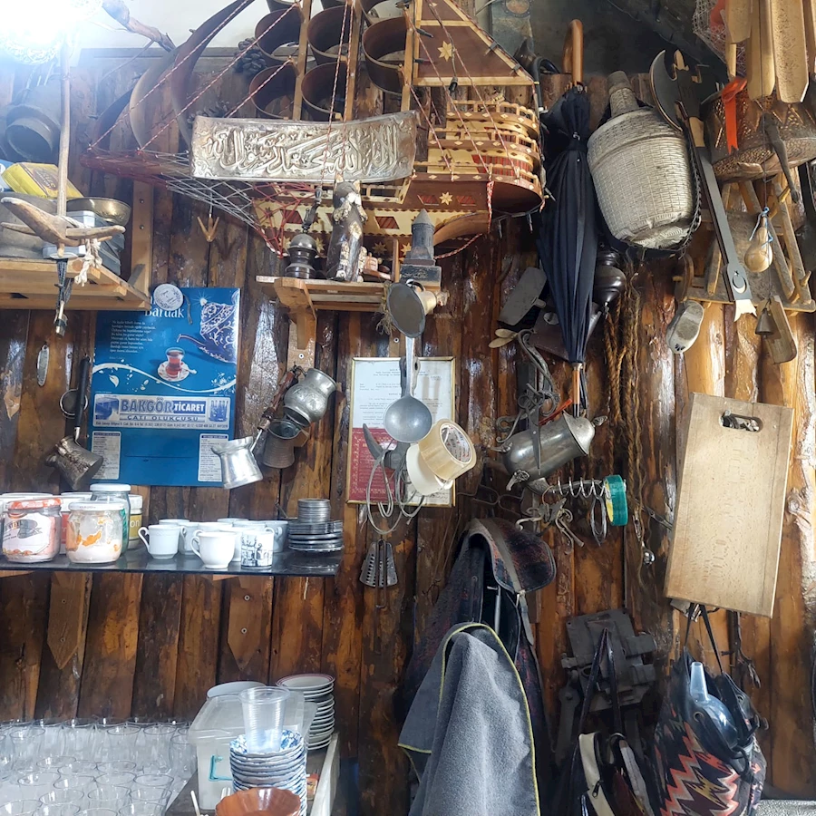 Eski Sanayi Sitesi'nde küçük dükkanında esnafa çay servisi yapan Ildız, çay ocağına gelen müşterilerden, çevredeki esnaftan ve başka illerden topladığı eşyaları iş yerinde sergiliyor.