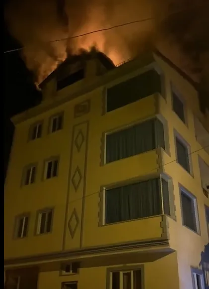 Kent merkezine 57 kilometre uzaklıktaki köyde, O.Ç'ye ait 4 katlı apartmanın çatısında henüz belirlenemeyen nedenle yangın çıktı.
